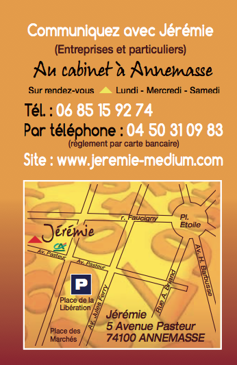 Installé depuis 17 ans, Jérémie, éclaire votre route. Reconnu pour posséder un don de naissance, la précision de ses prédictions lui confère une solide clientèle (nationale et internationale) de particuliers, chefs d'entreprises, de personnalités politiques.